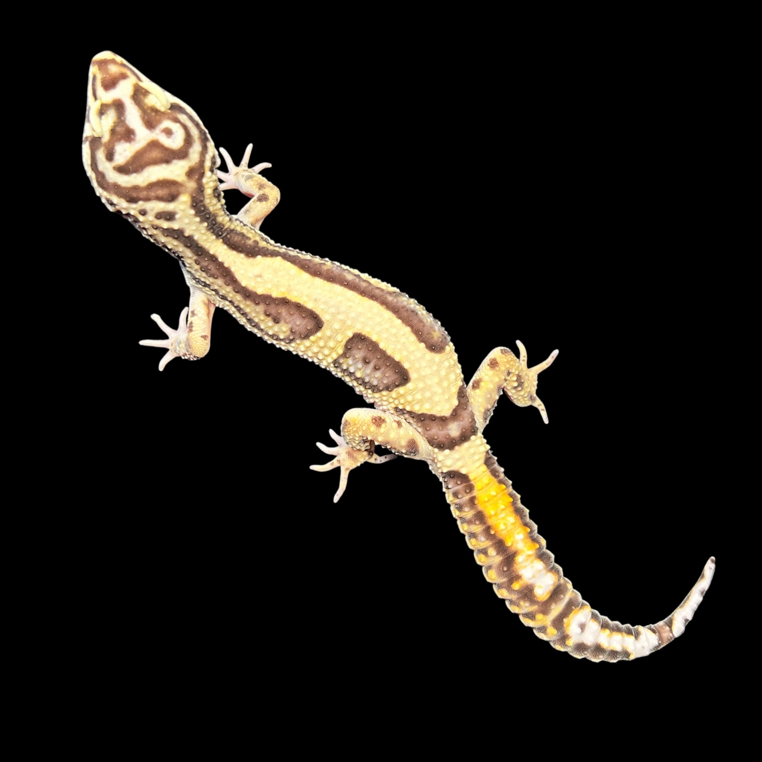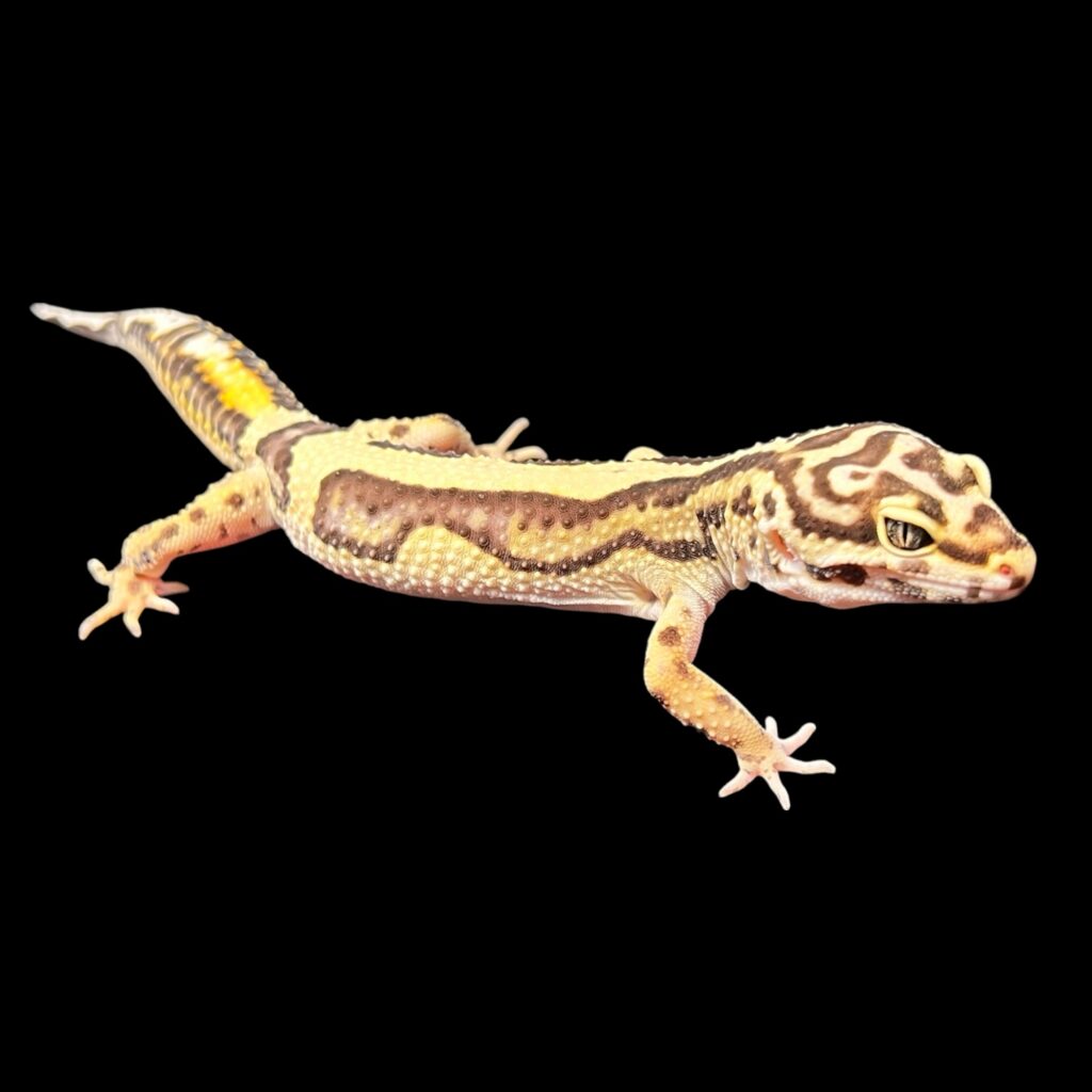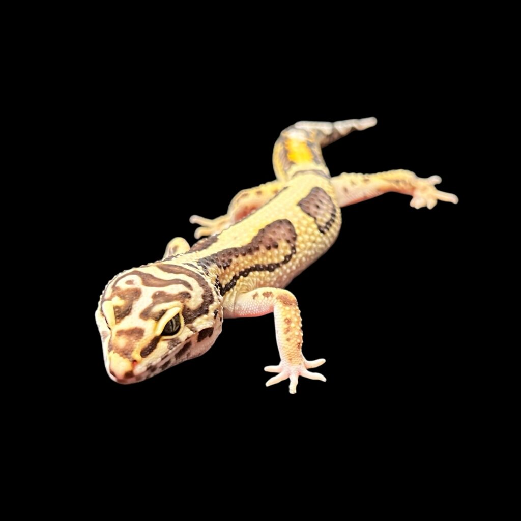 バンディット♂[№514] レオパ 2026.02.28 写真撮影R8/2/27 ¥20,000(税込) 学名:Eublepharis macularius 分布:アフガニスタン、パキスタン、インド 大きさ:全長約25㎝-体重約60g 寿命:10年程度 26年2月入荷 香港CB